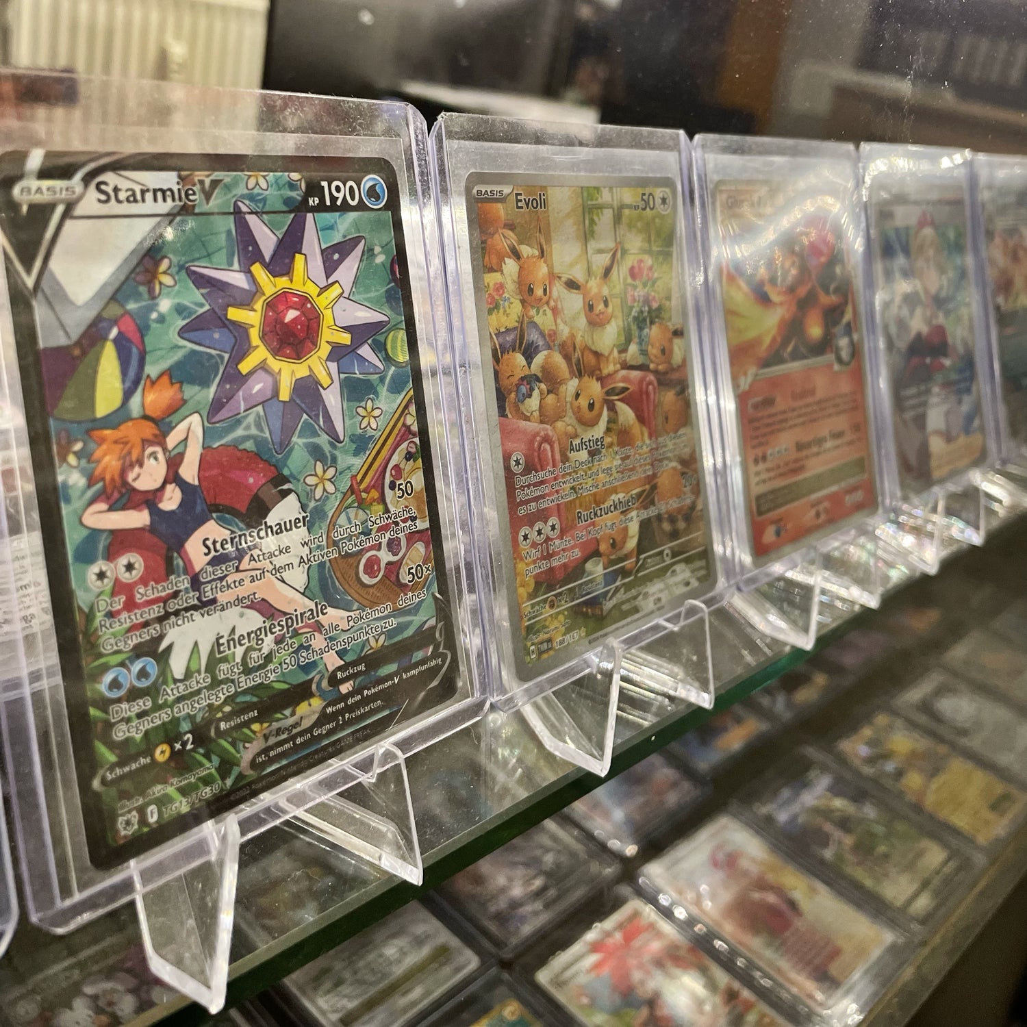 Du möchtest gerne Einzelkarten oder eine Sammlung verkaufen. Um den Wert sowie den Zustand der Karten begutachten zu können, bitten wir dich, deine Karten bei uns im Store in Bad Segeberg vorbei zu bringen oder per Post versichert und gut verpackt an uns zu schicken.