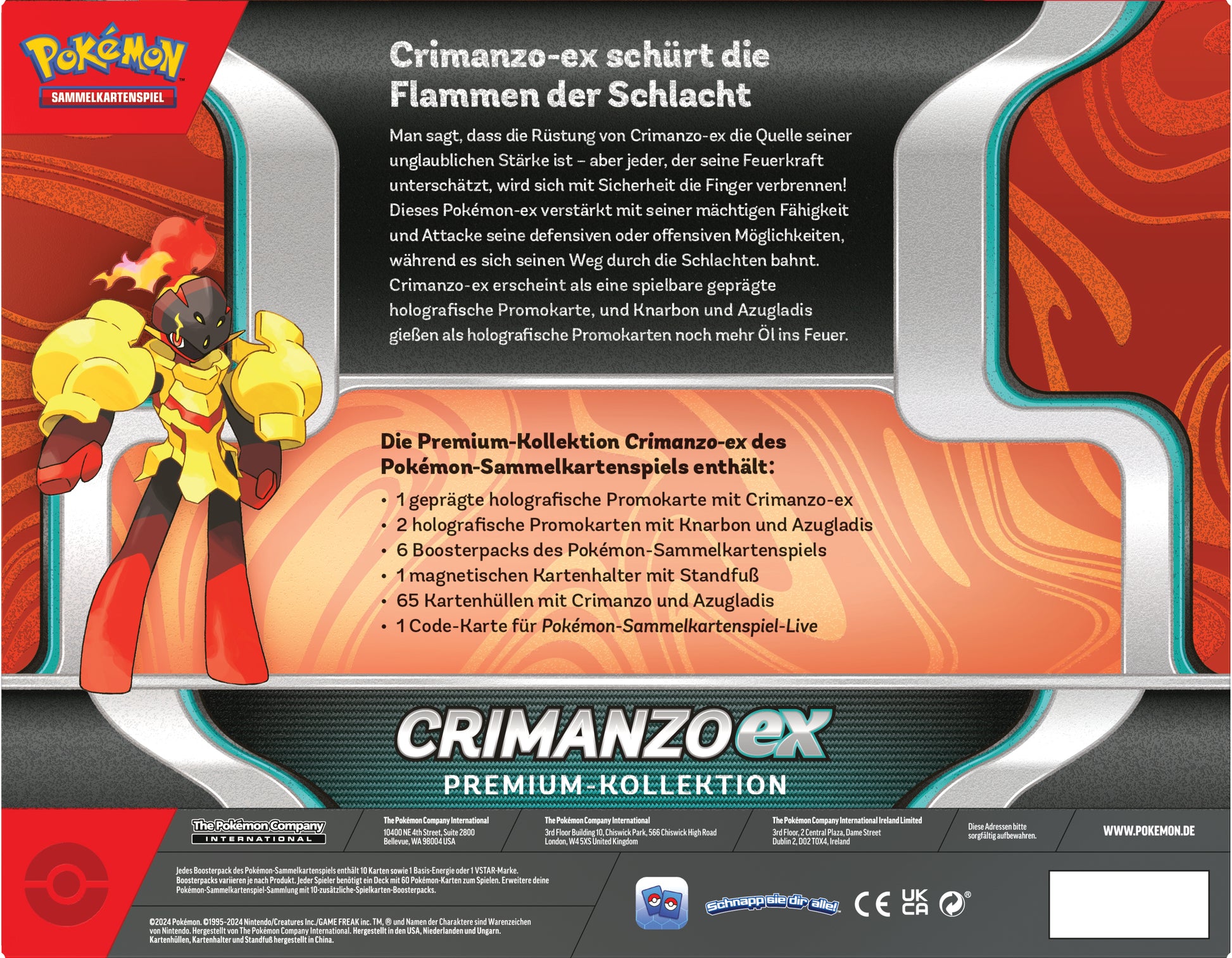Die Premium-Kollektion Crimanzo-ex des Pokémon-Sammelkartenspiels enthält: