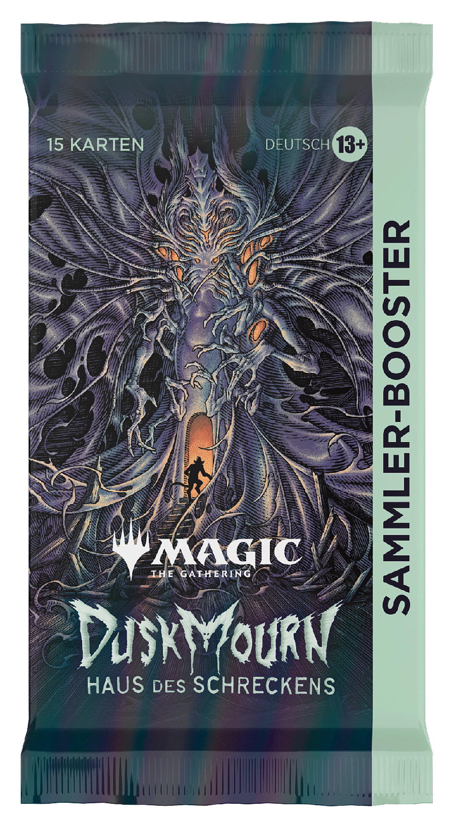 - INHALT – 1 Duskmourn: Haus des Schreckens Sammler-Booster mit 15 MTG-Karten und 1 traditionellen doppelseitigen Foil-Spielsteinkarte